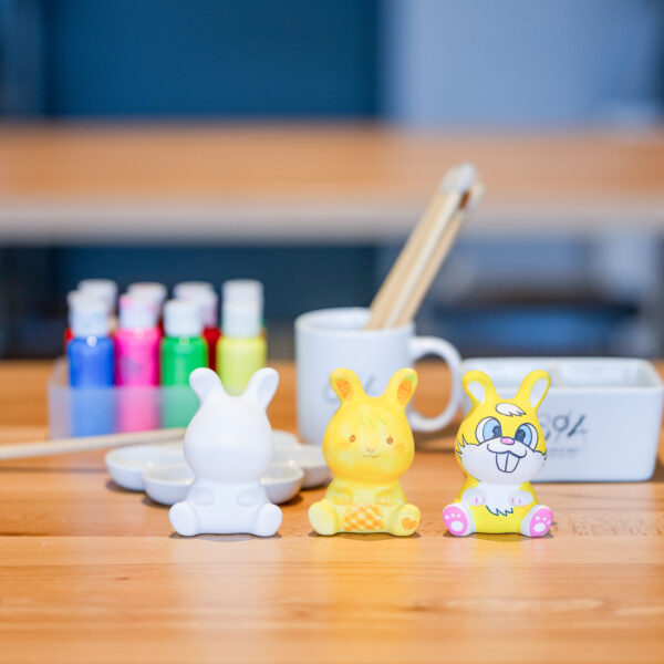 陶器の素地に絵の具や色鉛筆、マーカーなどで絵付けする、お子様から大人まで気軽に楽しめるコースです。