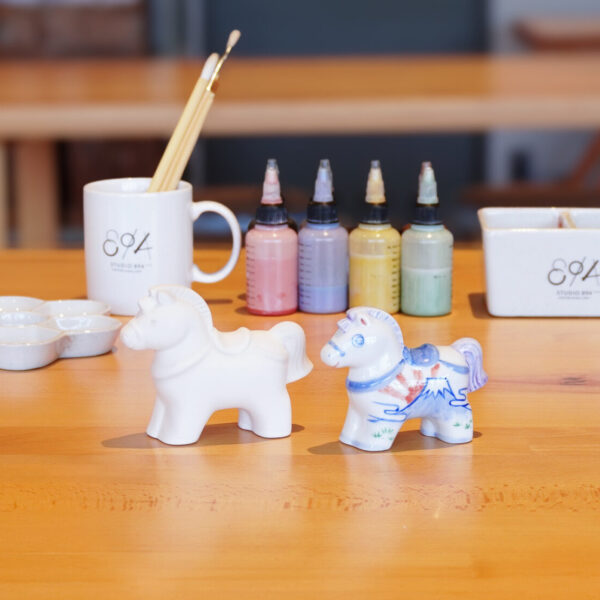磁器の素地に専用の絵の具で下絵付けをする、本格的な絵付け体験ができるコースです。※焼成のため、作品のお渡しは体験日から約1ヶ月後を予定しております。