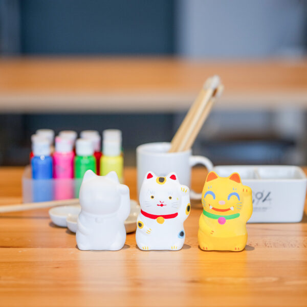 招き猫をはじめ、開運や招福の季節飾りなど、瀬戸のやきものの絵付け体験を毎日開催。お子様でも気軽に楽しめる「陶器 ぬり絵体験」、本格的な絵付けができる「磁器 絵付け体験」、お好きな絵柄の転写シートを貼り付けて仕上げる「銅版転写体験」から選べます。