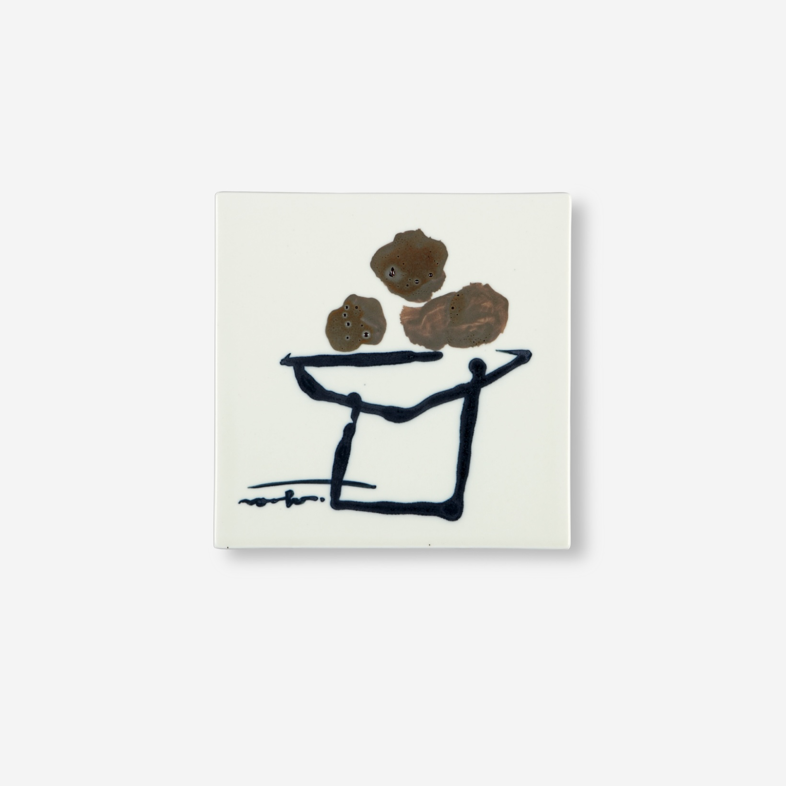本展では、はしもとなおこが陶板制作に挑戦し、通常の創作で多⽤する「黒」、「⻘」に、新たに「茶」を加えた3⾊のみで構成する、動物や植物をモチーフとした作品を展⽰します。異なる釉薬を組み合わせ、瀬⼾焼の技法に新たな試みを加えて制作された全40点が並び、釉薬の質感や焼成による⾊の変化が織りなす豊かな表情をお楽しみいただけます。